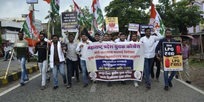 *वाढत्या माहागाई विरोधात सावनेर येथे युवक काँग्रेस चे तीव्र आंदोलन*