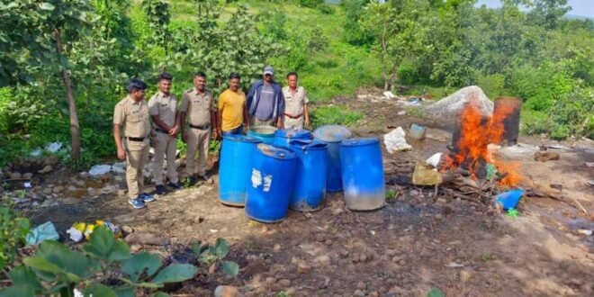 सावनेरः तहसीलके केलवद थाना अंतर्गत मौजा दाढेरा मे अवैध रुपसे भट्टी लगाकर प्रतिबंधीत महुआँ फुलोसे शराब बनाये जानेकी खबर प्राप्त होते ही थानेदार अमीतकुमार अत्राम एंव अधिनस्त अधिकारी कर्मचारीयोने घटनास्थल पहुचकर शराब बनाने हेतू उपयोग मे लाये जारहे महुआँ फुलोका रसायन सडाव,महुआँ शराब,जलाऊ लकडी,शराब बनानेके उपकरण तथा प्लास्टिक ड्रम आदी सामान किमत करीब दो लाख दस हजार आठसौ पचास रुपये का मुद्देमाल जगहपर ही नष्ट कर आरोपी चंद्रपाल संतोष राजपुत उम्र 61 निवासी पारधी बेडा तिडंगी तह.कलमेश्वर पर अवैध शराब निर्माण की धारा 65 (बी),(ई),(एफ) महाराष्ट्र दारुबंदी कायदा तहत मामला दर्ज कर कारवाई शुरू की*