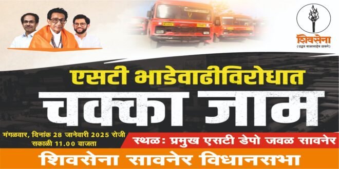 सावनेर – शिवसेना युवासेना तालुका व शहर चे आजी माजी पदाधिकारी यांना सूचित करण्यात येत आहे कि उद्या दि. २८/१/२०२५ मंगळवार रोजी *सर्व शिवसैनिकांच्या प्रमुख उपस्थिती मध्ये* स.११:०० वा. बस स्थानक सावनेर येथे एस.टी. दर वाढ संदर्भात सरकारचे जाहीर निषेध करण्या करिता सर्व शिवसेना पदाधिकारी कार्यकर्ते उपस्थित राहायचं आहे तरी सर्व शिवसेना युवा सेना महिला आघाडी आजी माजी पदाधिकारी न चूकता उपस्थित राहावे ही विनंती.🙏