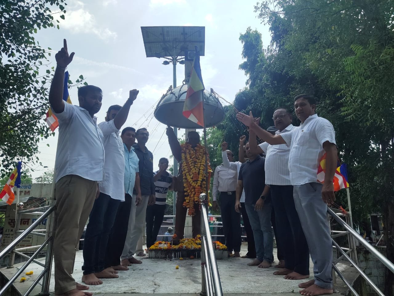 *साथ ही धम्मचक्र प्रवर्तन दिवस के अवसर पर बस स्थानक स्थीत डॉ. बाबासाहेब आंबेडकर के पुतलेको माल्यार्पण कर मानवंदना दी*