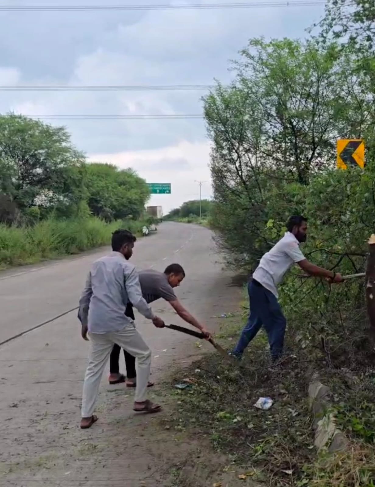 *हितज्योती आधार फाऊंडेशन व्दारे रस्त्याच्या कडेला वाढलेल्या झाडांची सफाई*