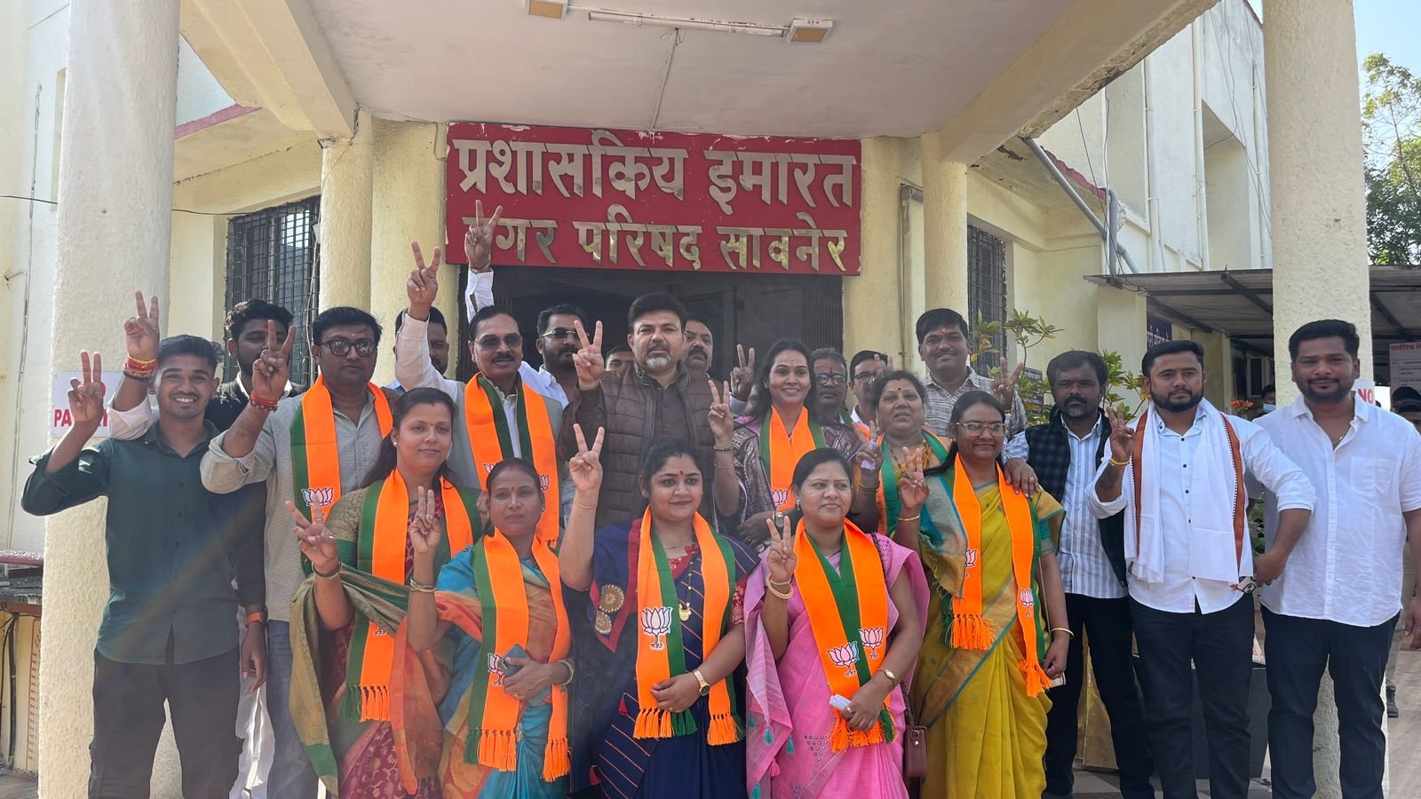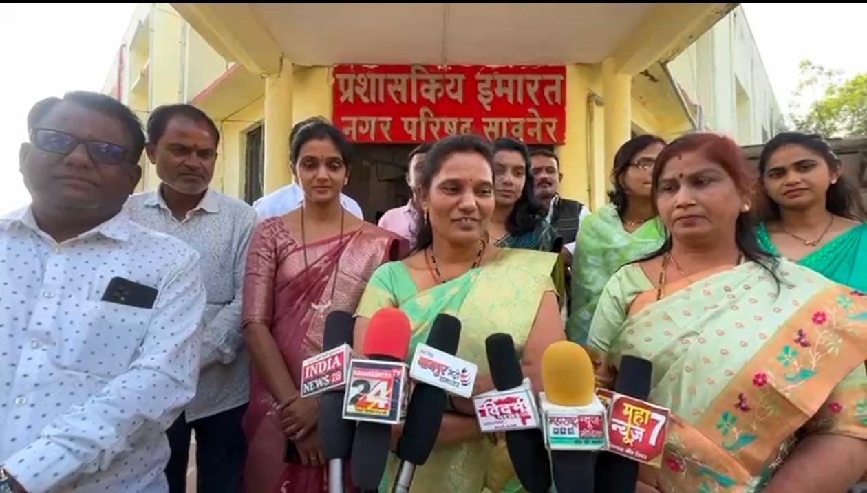 सावनेर ः नगर परिषद सावनेर के दि.2 दिसंबर को होणेवाले चुनाव हेतू नामांकन के अंतिम दिन भारतीय जनता पार्टीके प्रत्याशीयोने विधायक आशिष देशमुख नागपुर जिल्हा ग्रामीण अध्यक्ष मनोहर कुंभारे, सावनेर मंडल प्रमुख मंदार मंगळे, राजु घुगल आदीके प्रमुख उपस्थिती मे नगराध्यक्षा पद हेतू संजना मंदार मंगळे सहीत अन्य सदस्योके नामांकन दाखल कीये. शहरके चिचपुरा परीसर से सेकडो कार्यकर्ताओके साथ ढोल ताशे डीजे पर झुमते हुये शक्ती प्रदर्शन कर नगर परिषद कार्यालय पहुचकर नामांकन दाखल कीये.*